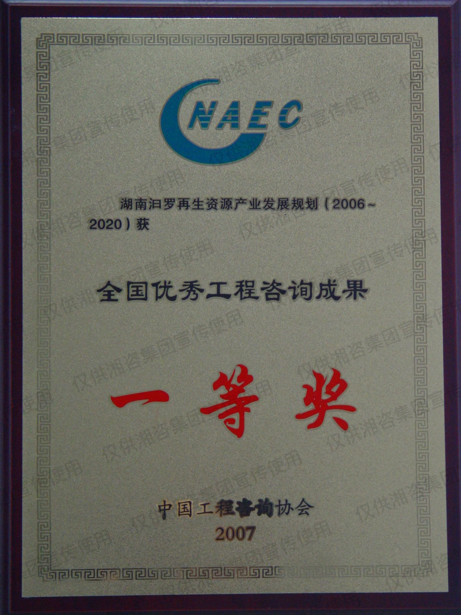湖南省优秀工程咨询成果一等奖