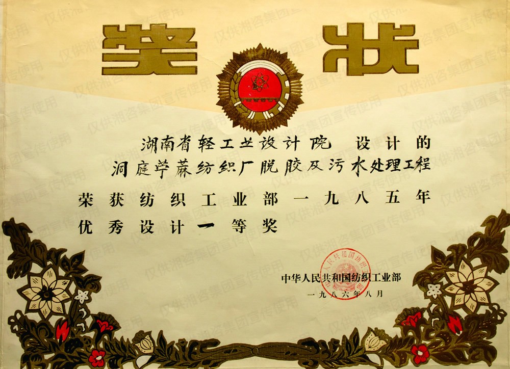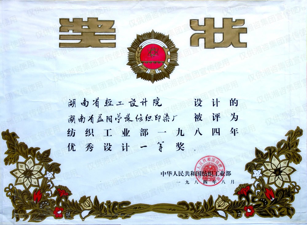 国家纺织工业部优秀设计一等奖