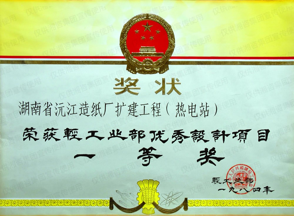 国家轻工部优秀设计项目一等奖