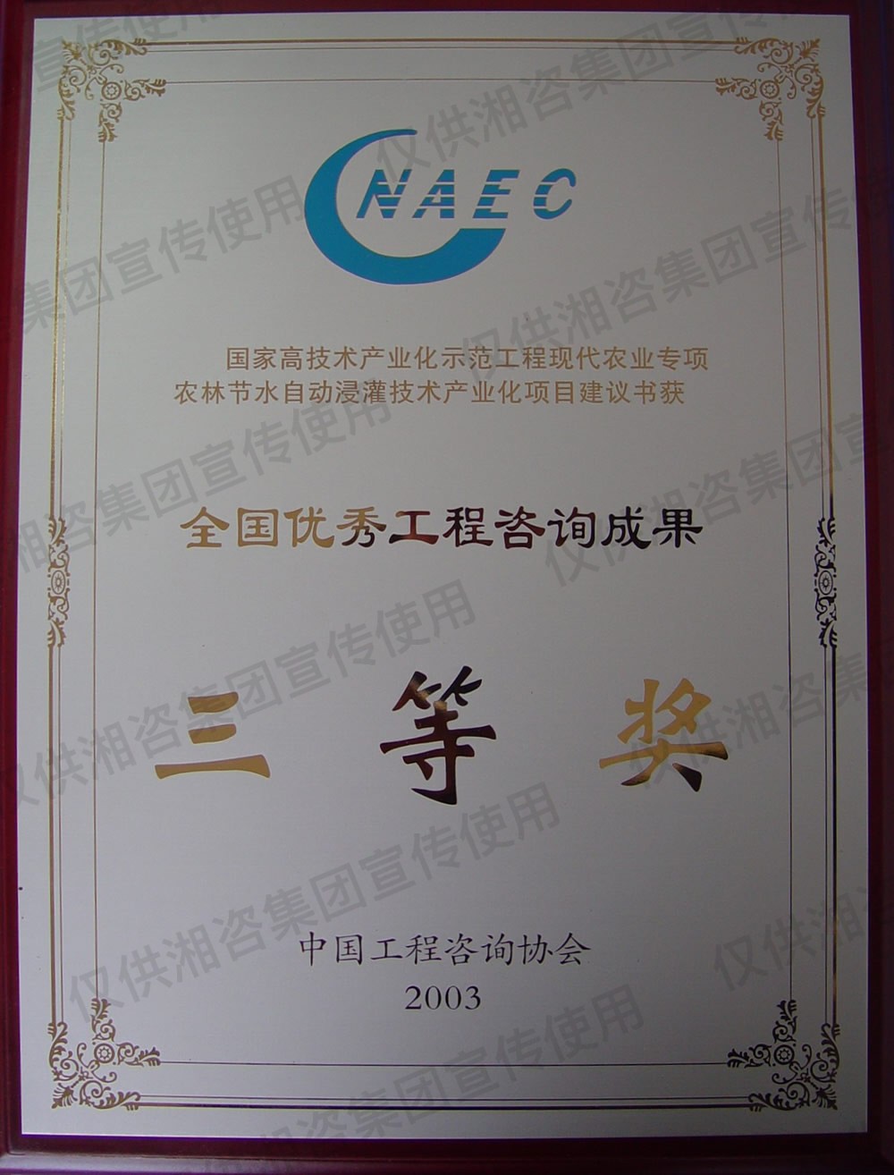 中国轻工业工程建设协会优秀工程咨询成果三等奖