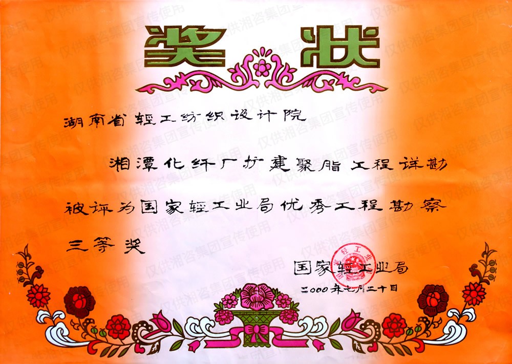 中国轻工业工程建设协会优秀工程勘察三等奖