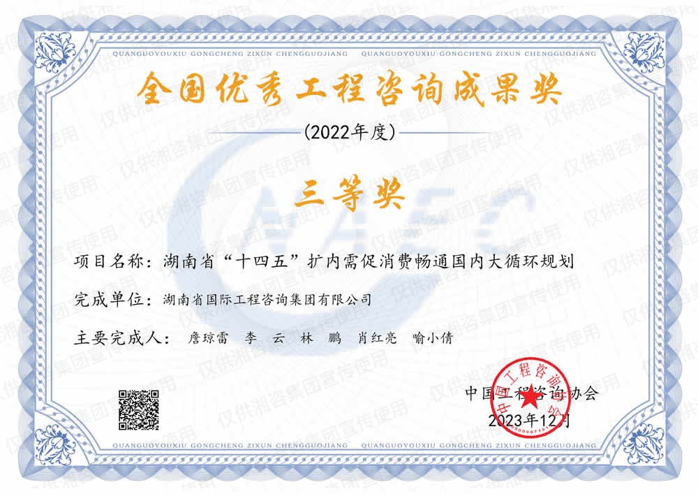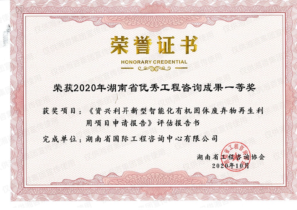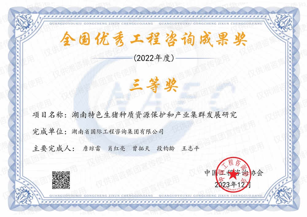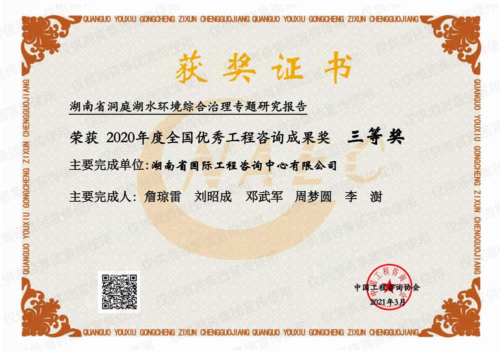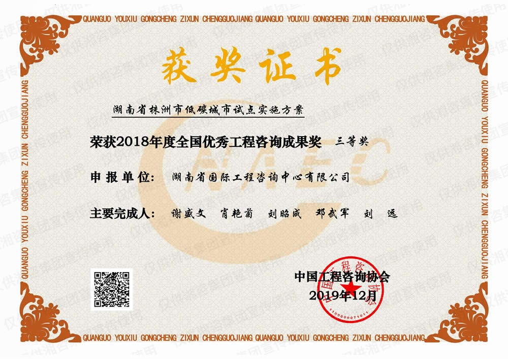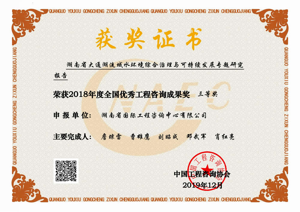 湖南省优秀工程咨询成果一等奖