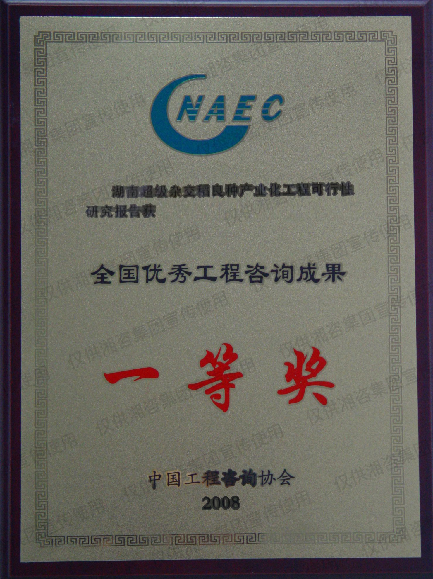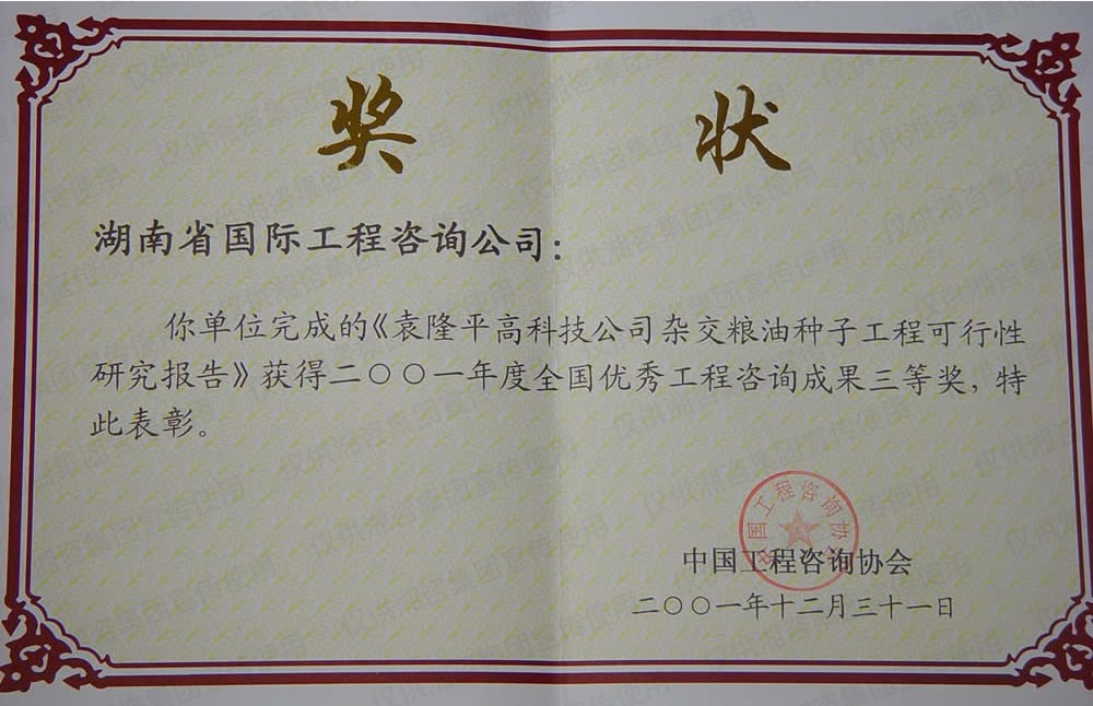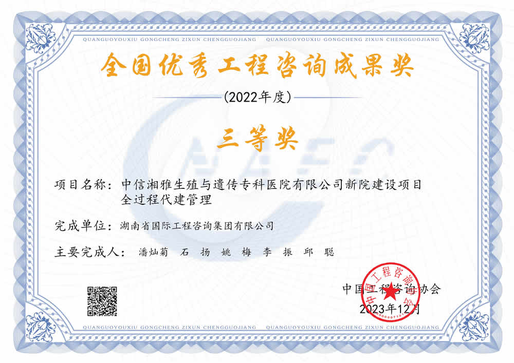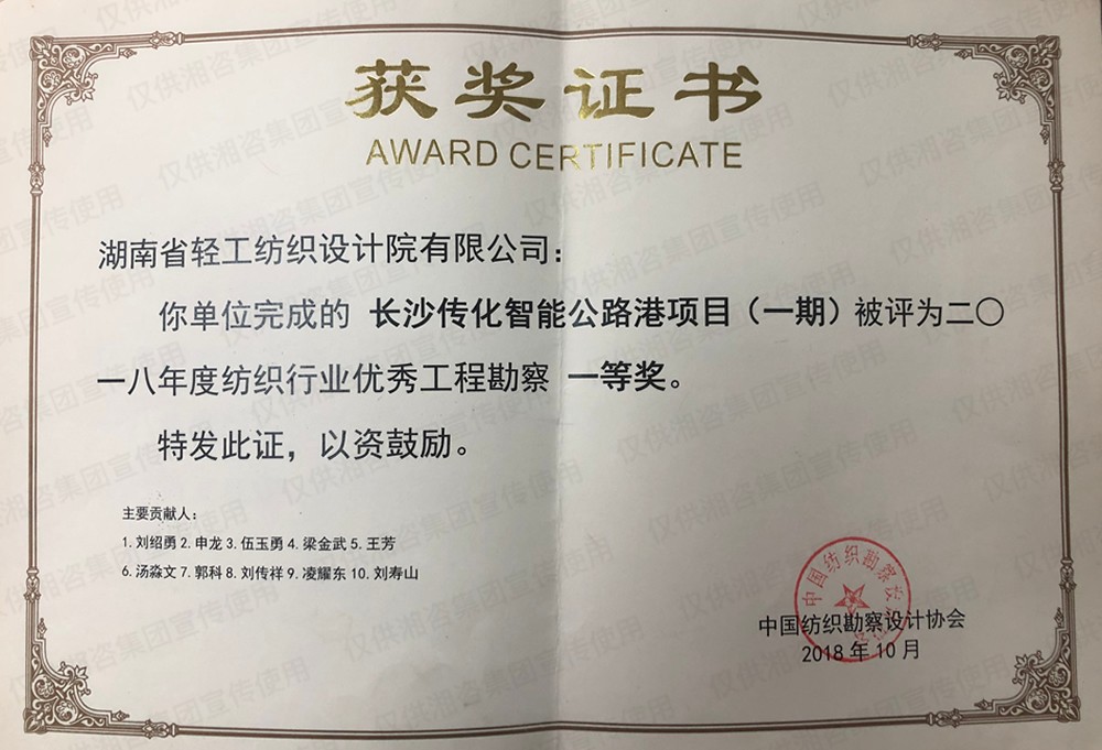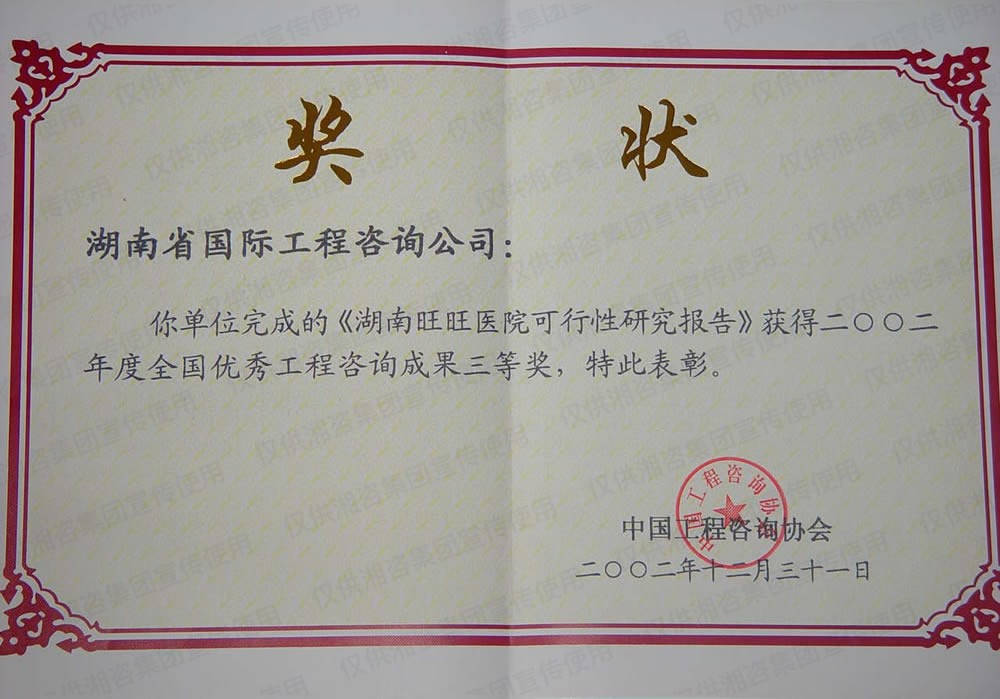 湖南省优秀工程咨询成果一等奖