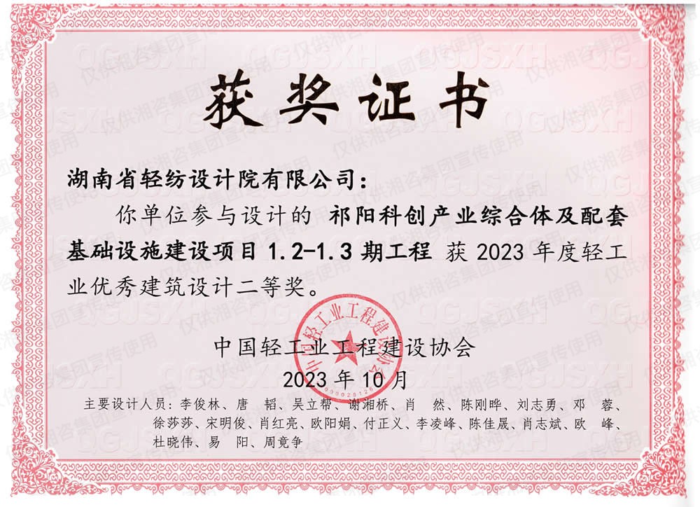中国轻工业工程建设协会优秀建筑设计二等奖