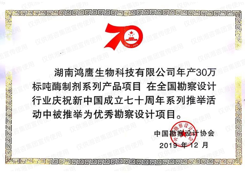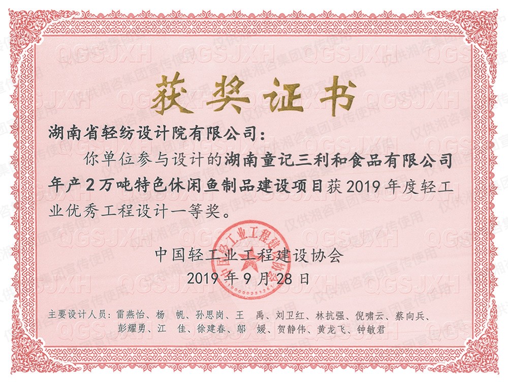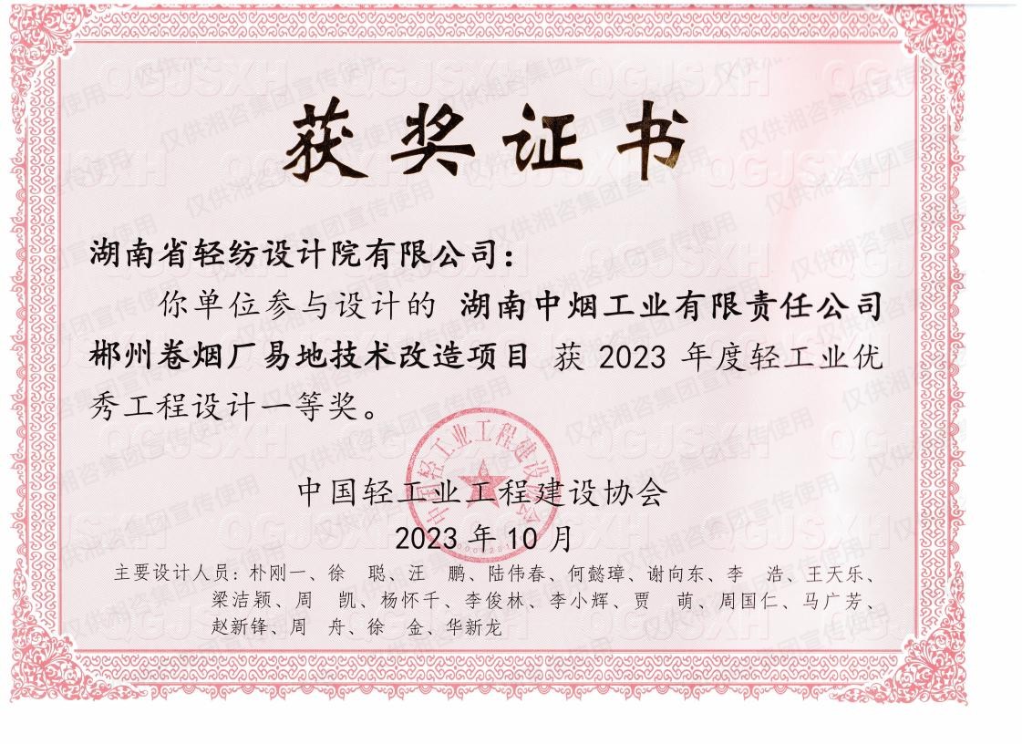 中国轻工业工程建设协会优秀工程设计一等奖