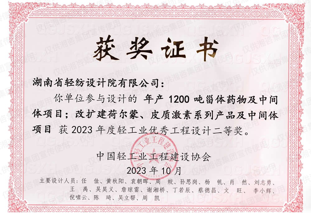 中国轻工业工程建设协会优秀工程设计二等奖