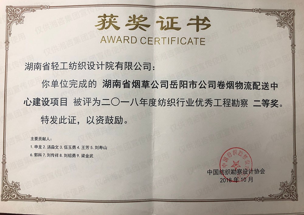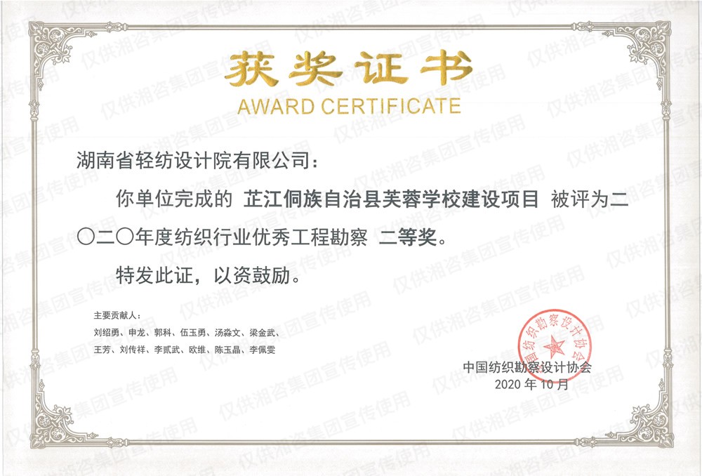 中国纺织勘察设计协会优秀工程勘察二等奖