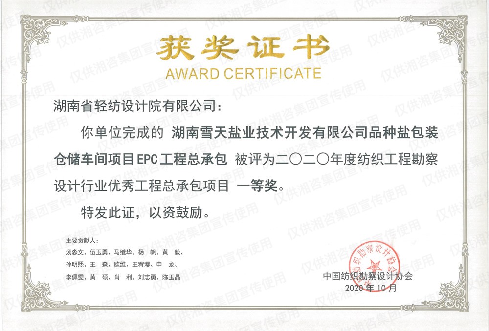 湖南雪天盐业技术开发有限公司品种盐包装仓储车间项目EPC工程总承包