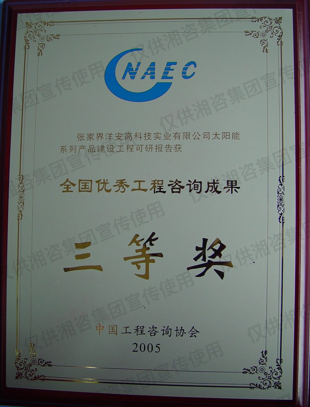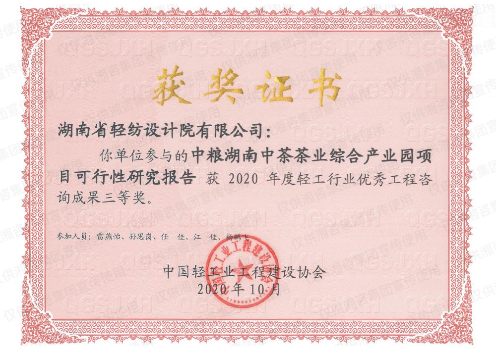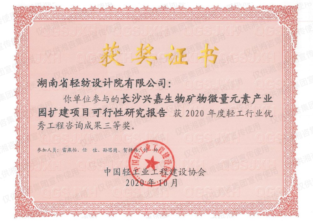 中国轻工业工程建设协会优秀工程咨询成果三等奖
