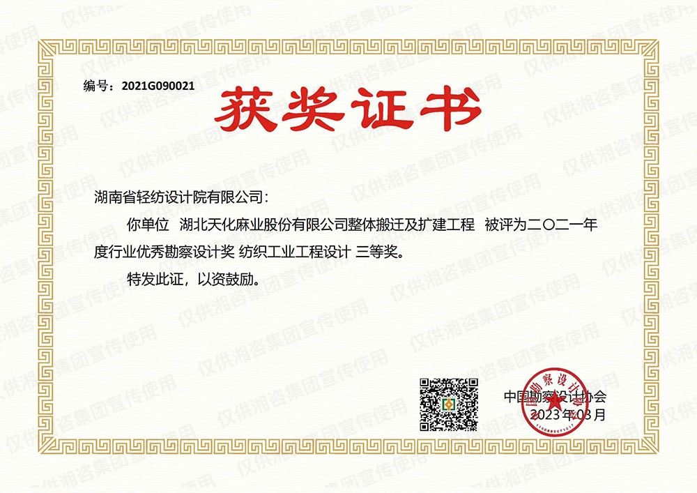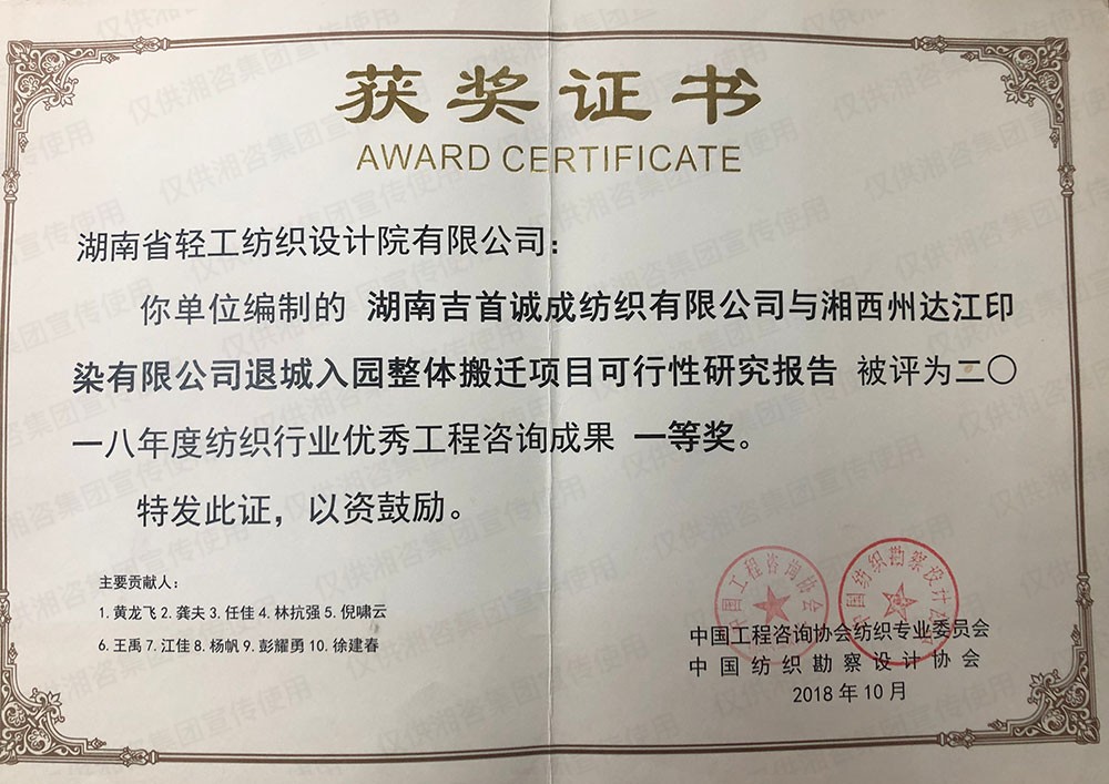 中国纺织勘察设计协会优秀工程咨询成果一等奖