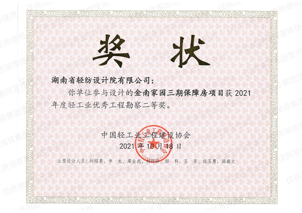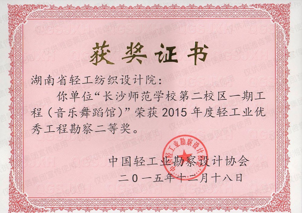 中国轻工业工程建设协会优秀工程勘察二等奖