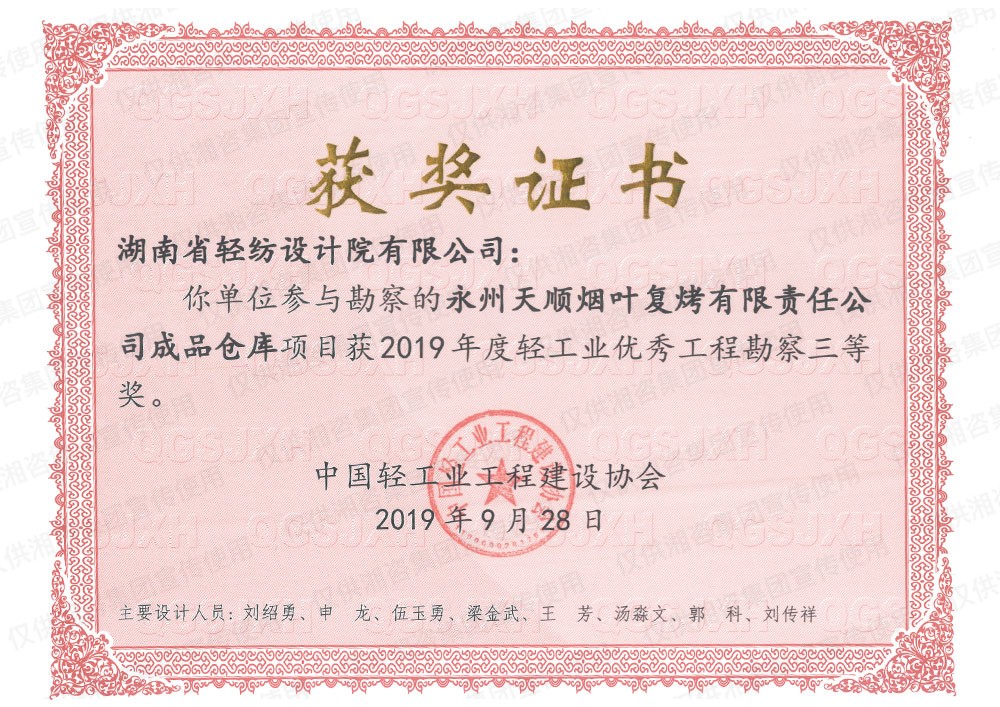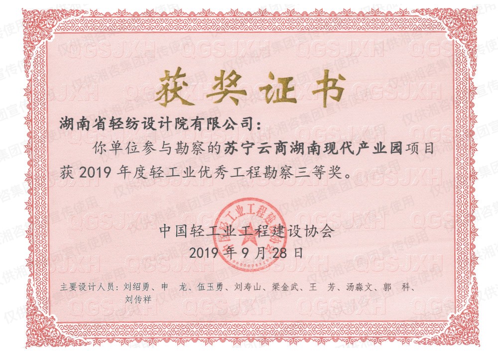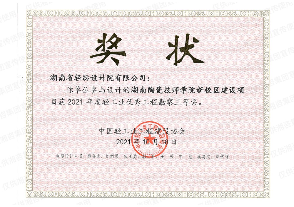 中国轻工业工程建设协会优秀工程勘察三等奖
