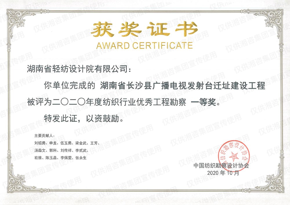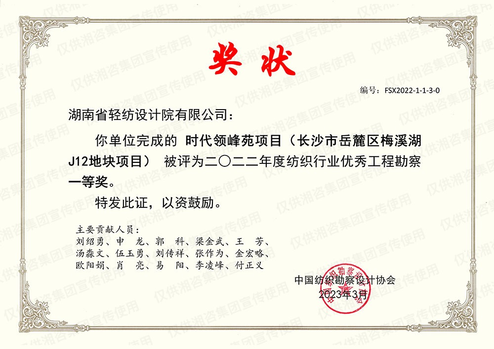 中国纺织勘察设计协会优秀工程勘察一等奖