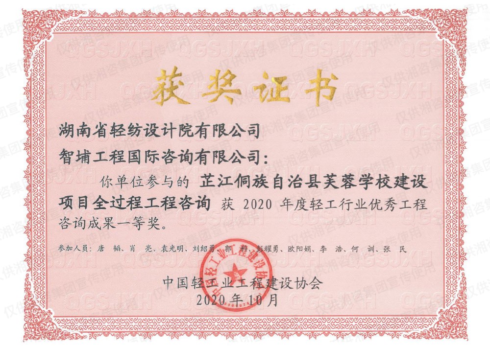 中国轻工业工程建设协会优秀工程咨询成果一等奖
