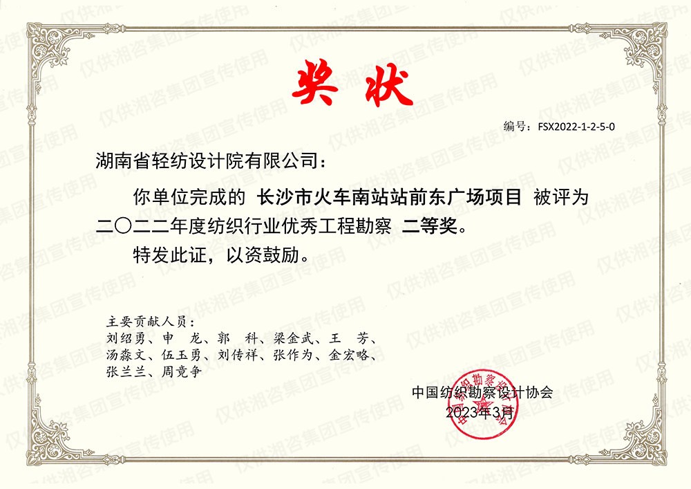 湖南省勘察设计协会优秀工程勘察设计二等奖