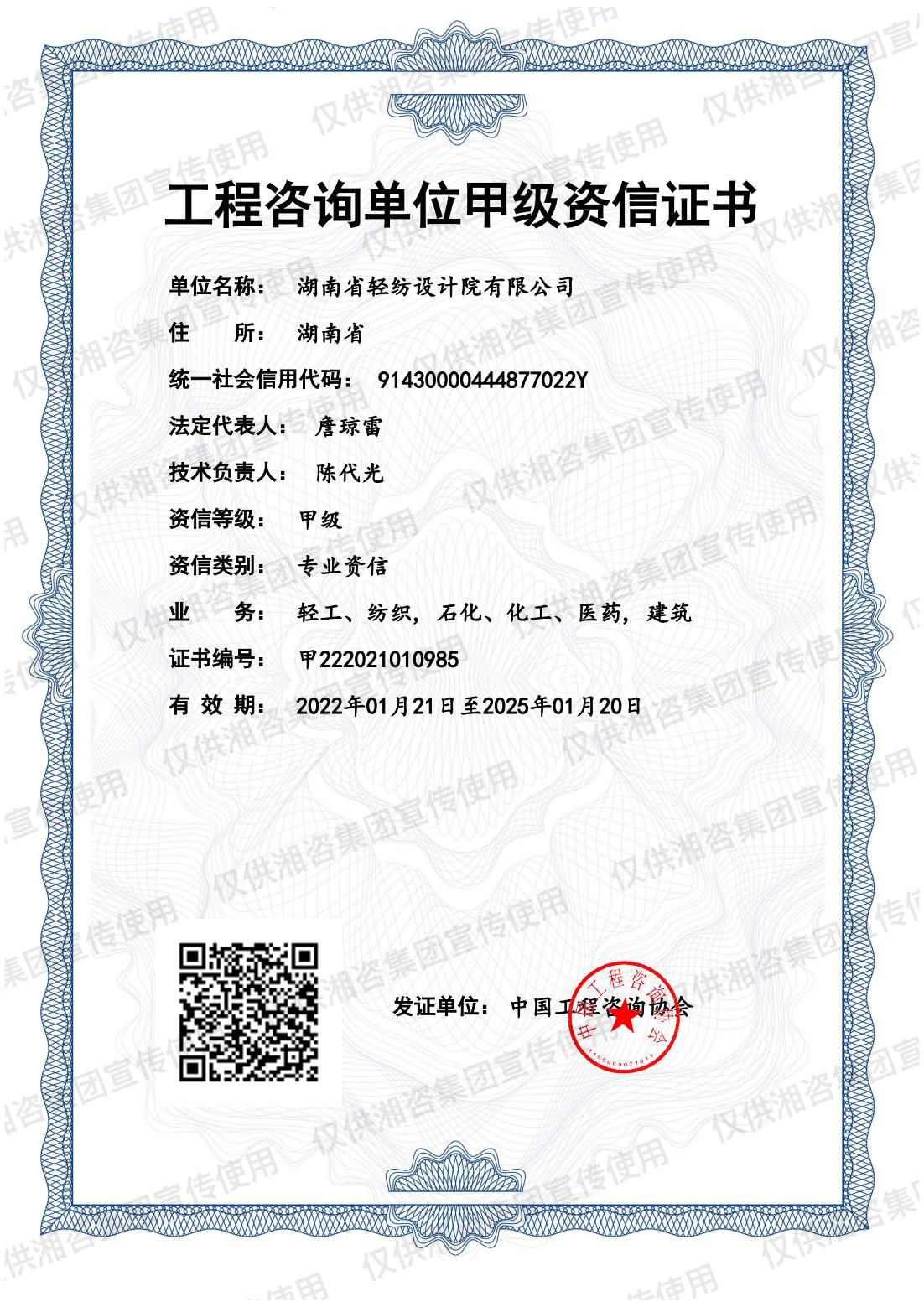 工程咨询单位甲级资信证书-甲级