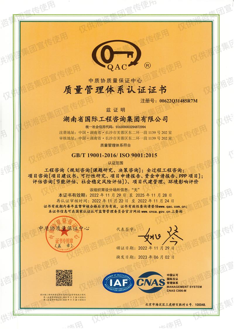 质量管理体系认证证书