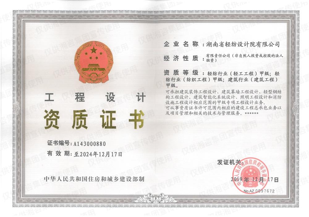 工程设计资质证书-甲级