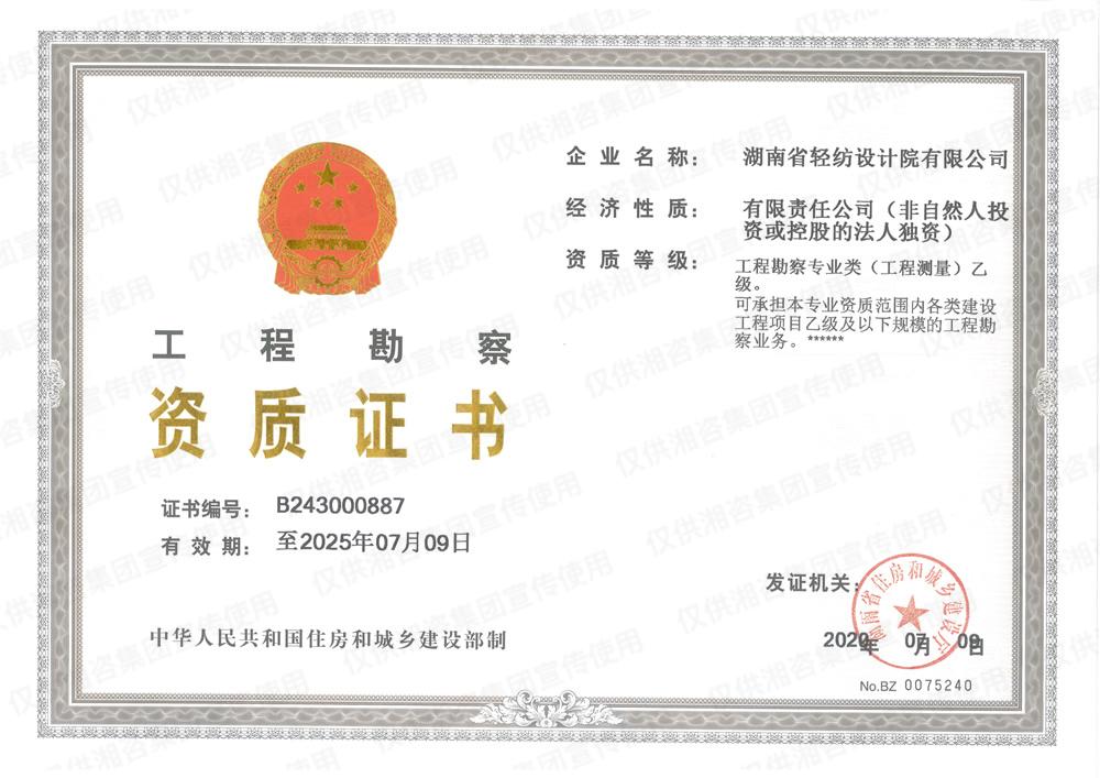 工程勘察资质证书-乙级