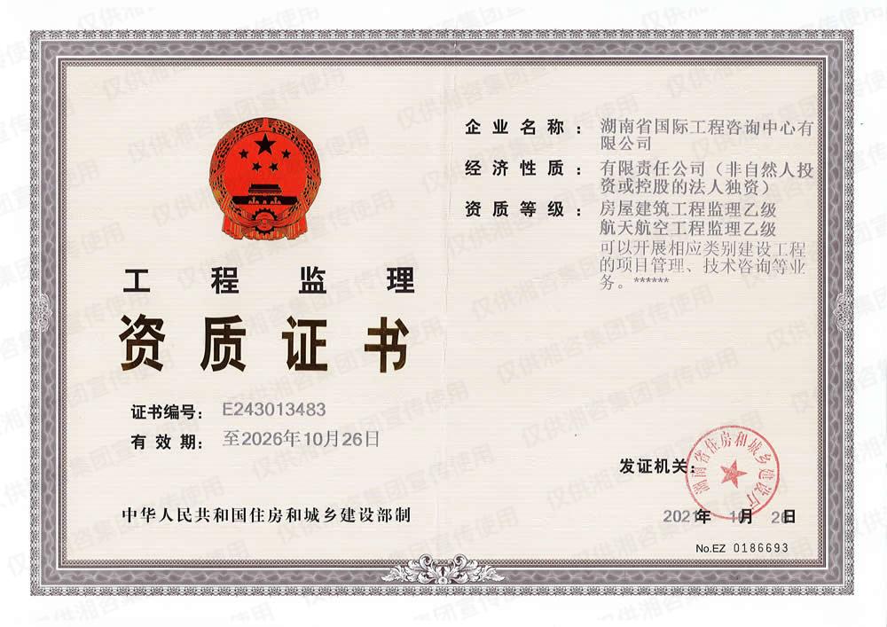 工程监理资质证书-乙级