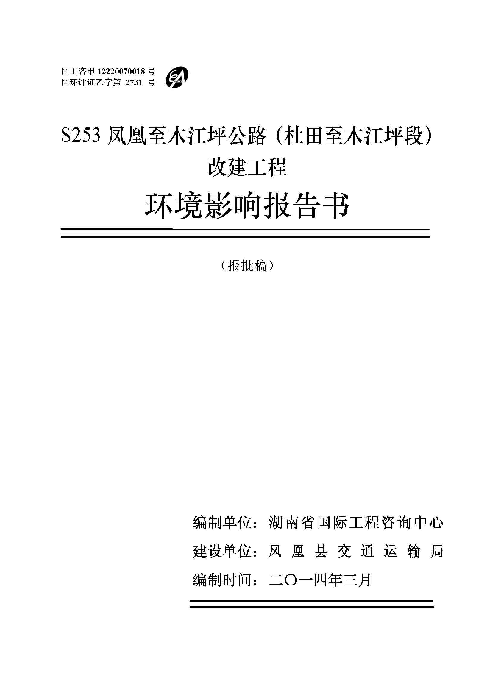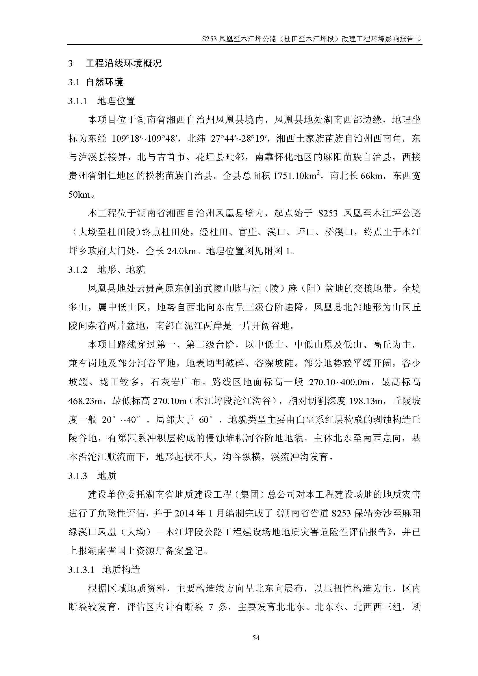 S253凤凰至木江坪公路改建工程环境影响报告书