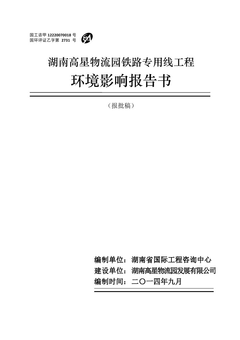 高星物流铁路专用线环评报告(报批)