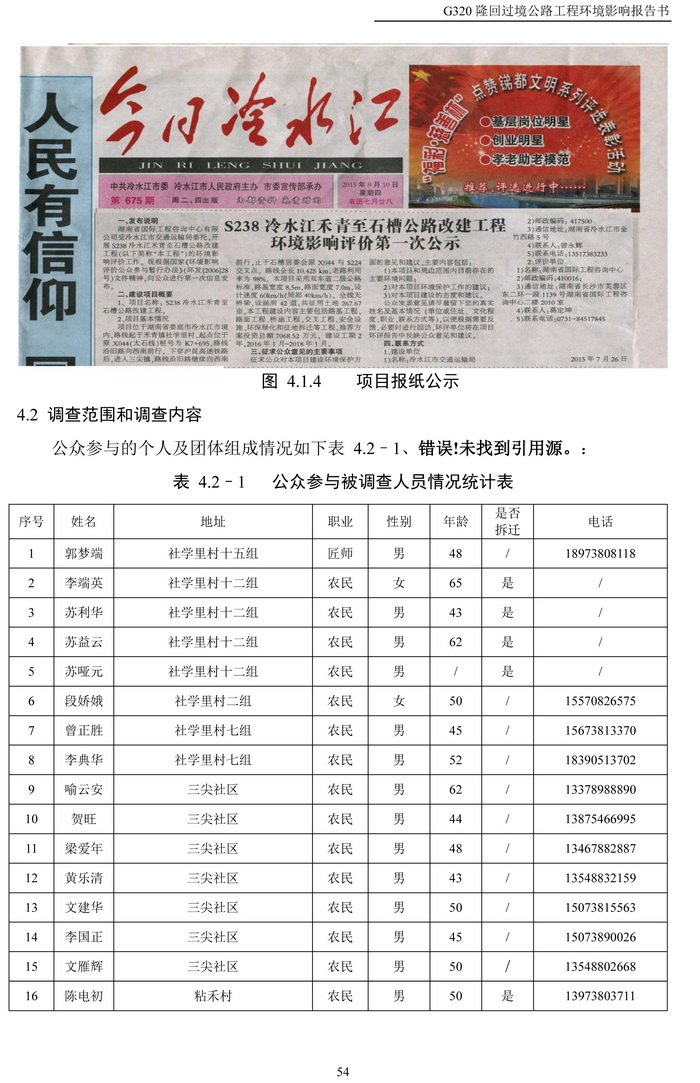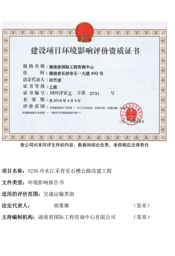 S238冷水江禾青至石槽公路改建工程环评公示(简本)