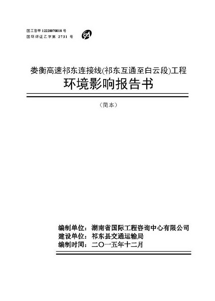娄衡高速祁东连接线(祁东互通至白云段)工程环境影响报告书简本