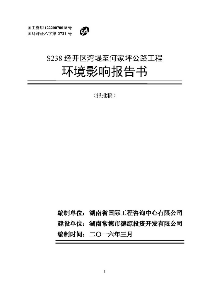 S238经开区湾堤至何家坪公路工程(报批稿公示)