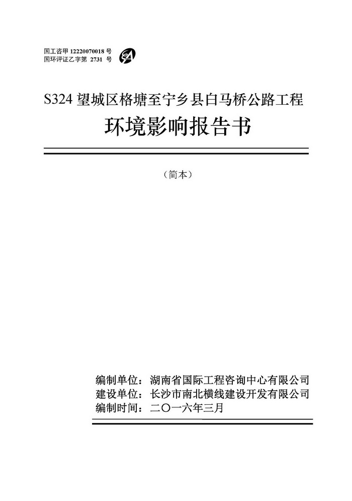S324望城区格塘至宁乡县白马桥公路工程环境影响报告书(简本))