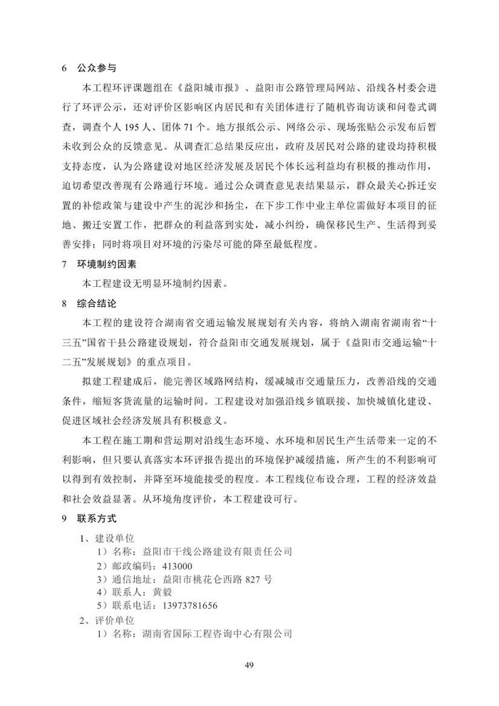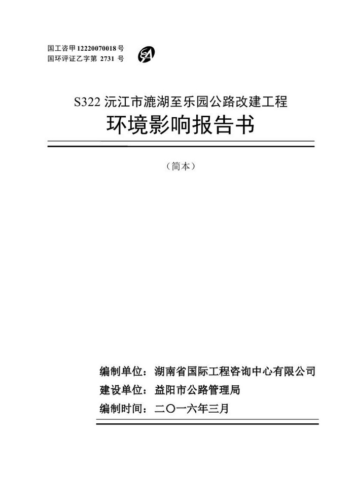 S322沅江市漉湖至乐园公路改建工程环境影响报告书(简本)