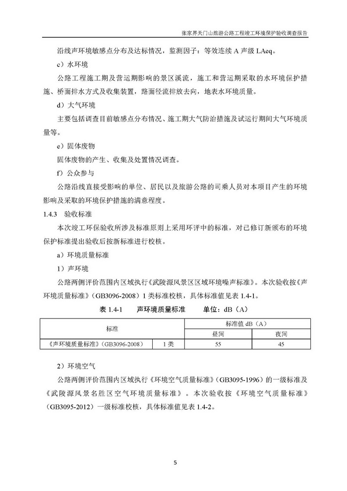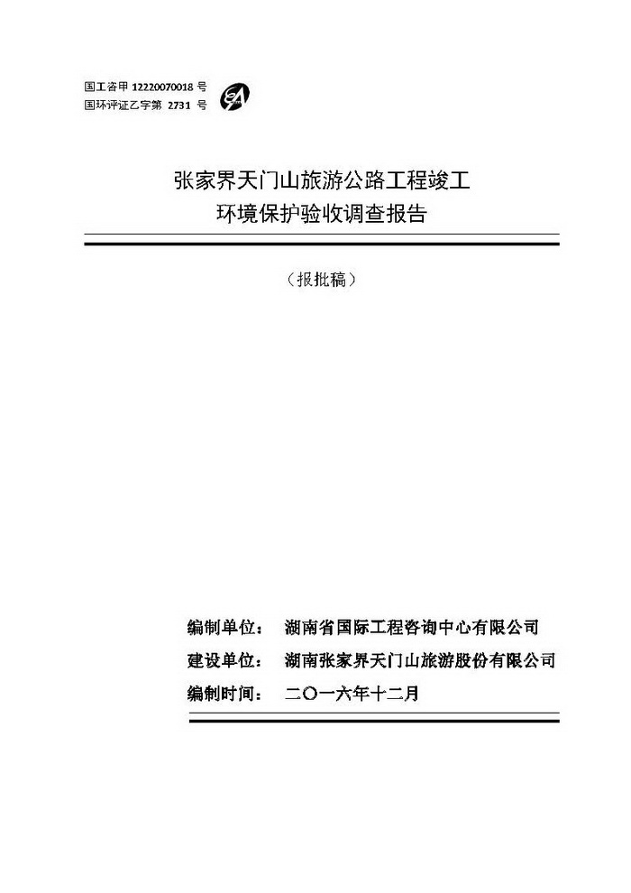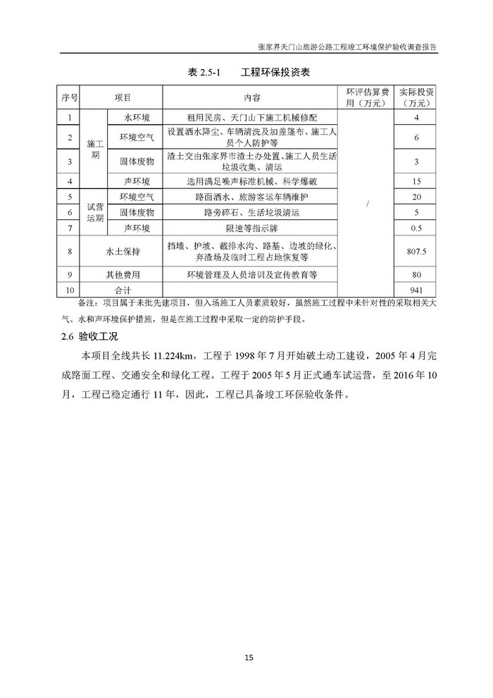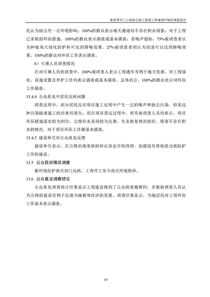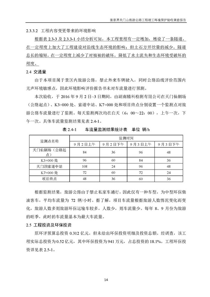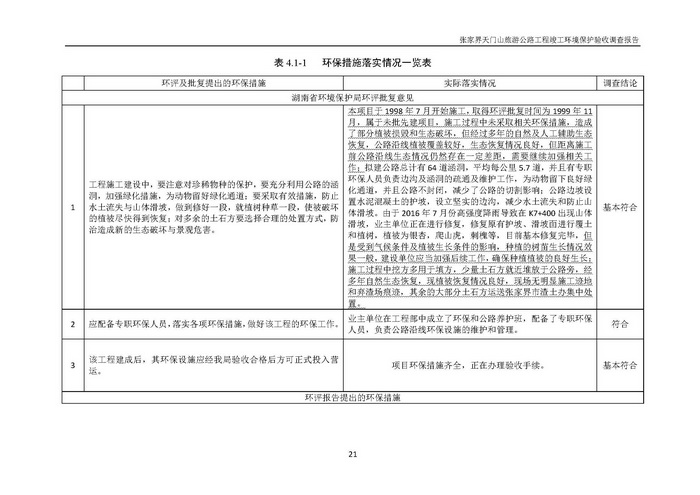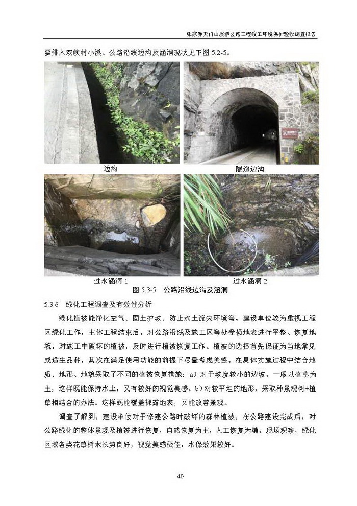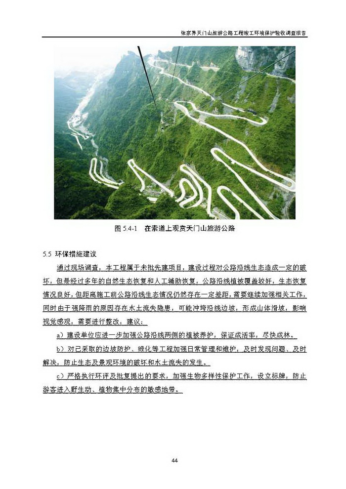张家界天门山旅游公路工程骏工环保验收调查报告