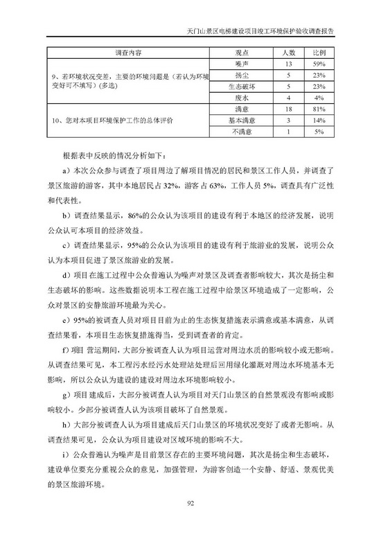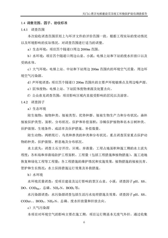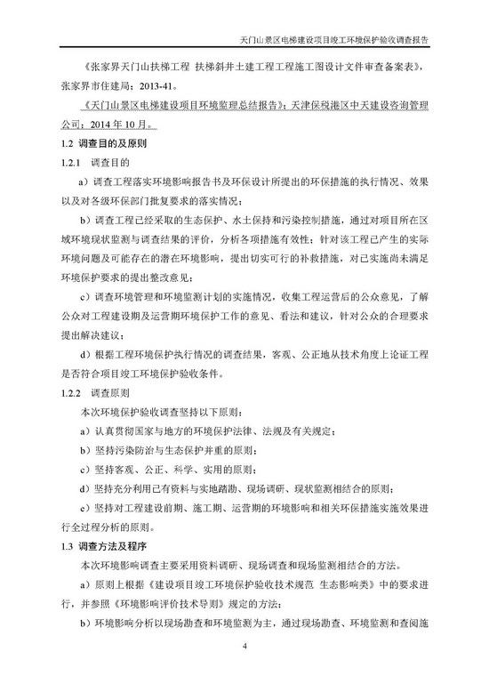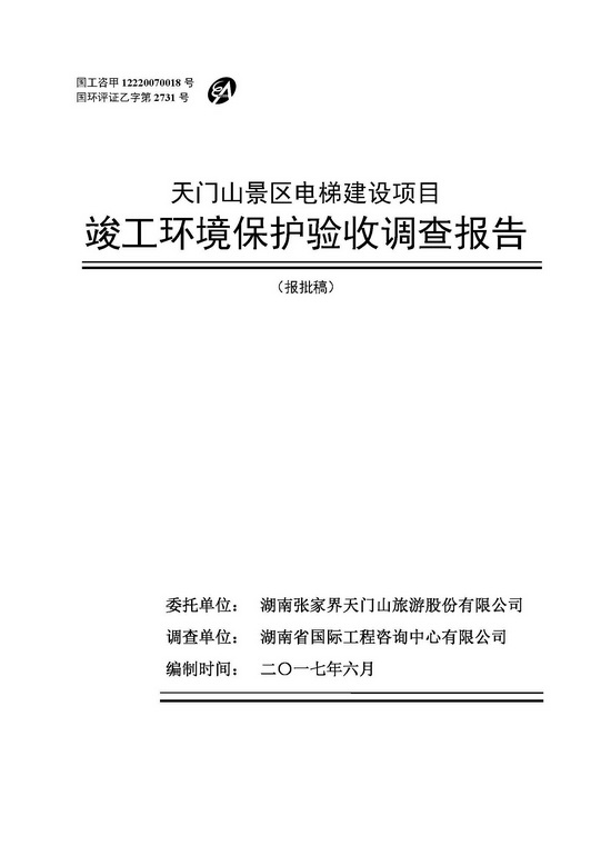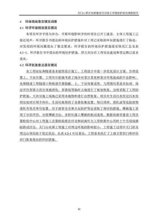 天门山景区电梯工程变更项目环境保护验收调查报告(全本公示稿)