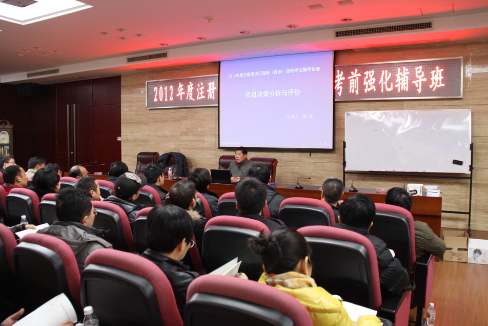 2012年2月17日至20日,湖南省工程咨询协会在中心大会议室举办了为期四天的注册咨询工程师(投资)考前强化辅导班。中心今年28名报考注册咨询工程师(投资)的干部职工,以及纪检监察、办公室、综合处、机关党委、工会、部分子公司负责人共49人参加了培训。