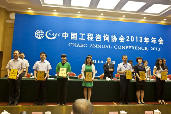 为了表彰和奖励在我国工程咨询业务中做出突出贡献的集体和个人,推动全国工程咨询业不断提高服务质量和水平,更好地为经济建设服务,年会还举办了2012年度全国优秀工程咨询成果颁奖仪式。我中心编制的《湖南省“两型社会”建设重点课题——长株潭城市群供水安全提质方案专题研究报告 》获得全国优秀咨询成果二等奖,并作为推选的30个获奖代表之一上主席台领奖。