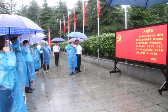 紧接着,在毛主席铜像前,全体党员面对鲜红的党旗,高举右手,神情庄重,齐声重温了入党誓词。