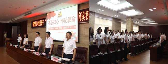 首先,党委书记、董事长詹琼雷带领全体党员重温入党誓词,大家用满怀激情的宣誓声,表达了对党的忠诚和扎实开展主题教育的决心。