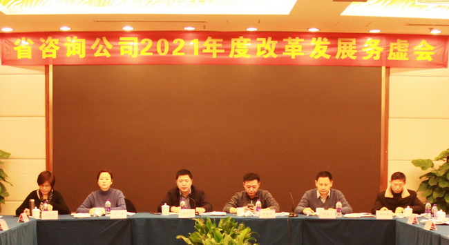为进一步推动公司高质量发展,研究谋划2021年及“十四五”时期的工作目标和总体思路,1月22-23日,省咨询公司召开了2021年改革发展务虚会,公司党委书记、董事长詹琼雷主持会议并讲话,公司领导班子成员以及各部室、子公司、分公司中层正副职参加了会议。