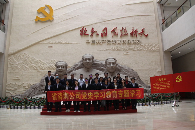 4月20日上午,省咨询公司党委书记、董事长詹琼雷带领党委班子成员、党支部书记、各部室负责人和党员代表到湖南党史陈列馆开展党史学习教育,现场重温入党誓词,聆听党课,引导党员干部深入学习党史,筑牢信仰之基,勇担职责使命。