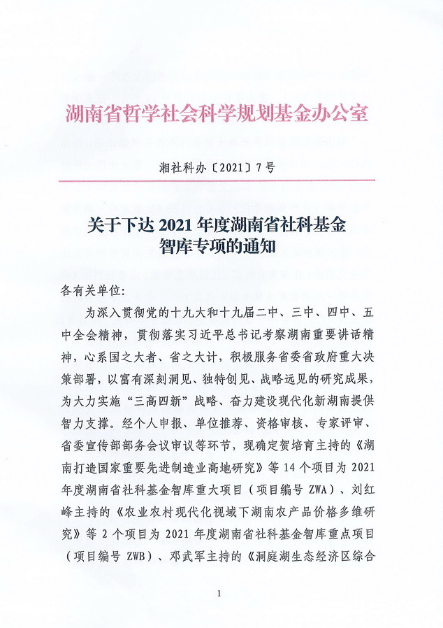 近日,湖南省哲学社会科学规划基金办公室公布了《关于下达2021年度湖南省社科基金智库专项的通知》(湘社科办〔2021〕7号),省咨询公司生态规划咨询部凭借在生态文明建设、区域经济规划领域的专业经验与过硬实力,以《洞庭湖生态经济区综合研究》项目成功入选。