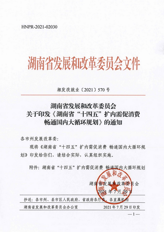 2021年8月17日,省发展改革委正式发布由省咨询公司承担编制的《湖南省“十四五”扩内需促消费 畅通国内大循环规划》(下称《规划》)。