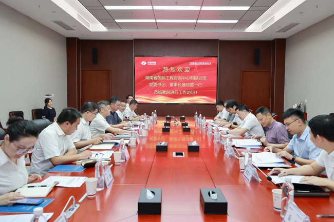 周峰对詹琼雷一行表示欢迎,并介绍了中国电建中南院的整体情况以及业务优势。他指出,省咨询公司作为省属唯一的企业智库与综合性甲级工程咨询机构,与中国电建中南院合作历史悠久,基础牢固。希望双方始终聚焦国、省家重大发展战略需求,在今后的务实合作中,明确战略合作方向,建立有效对接机制,积极探索全方位、多层次的高效合作模式,进一步做好无缝对接,优势互补,共同推进双方合作互利共赢。