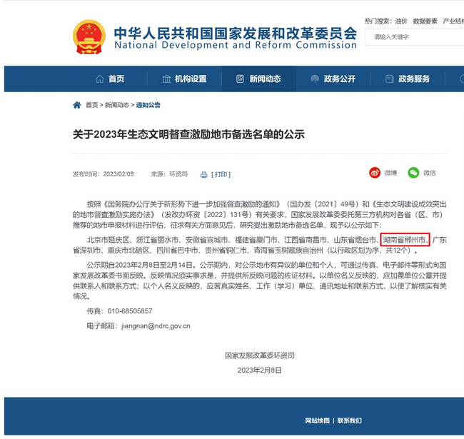 近日,由省咨询公司生态规划咨询部承接的郴州市《2023年国务院生态文明督察激励》申报项目从全国近30个申报地市中脱颖而出,顺利通过国家发展改革委筛选评估,这也标志着郴州市作为湖南省唯一地市,成功入选2023年国务院生态文明督查激励地市名单,实现了湖南省在生态文明督查激励领域零的突破。