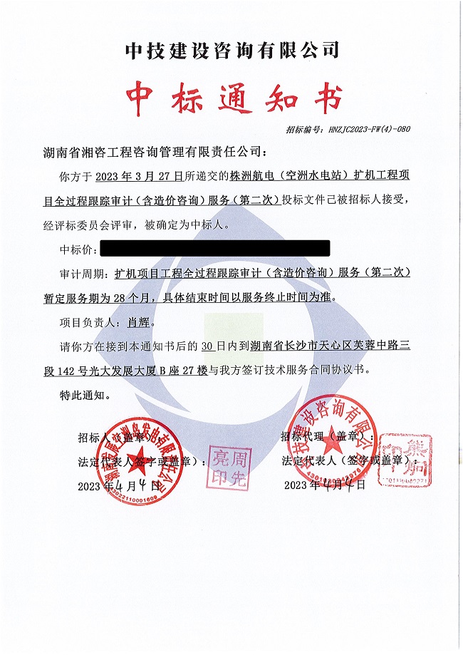 近期,我司下属湖南省湘咨工程咨询管理有限责任公司凭借强大的造价咨询服务能力、综合实力及良好的公司信誉,连续中标湘投国际衡东2×490MW级燃气-蒸汽联合循环发电工程、株洲航电(空洲水电站)扩机工程等两个全过程造价咨询项目。