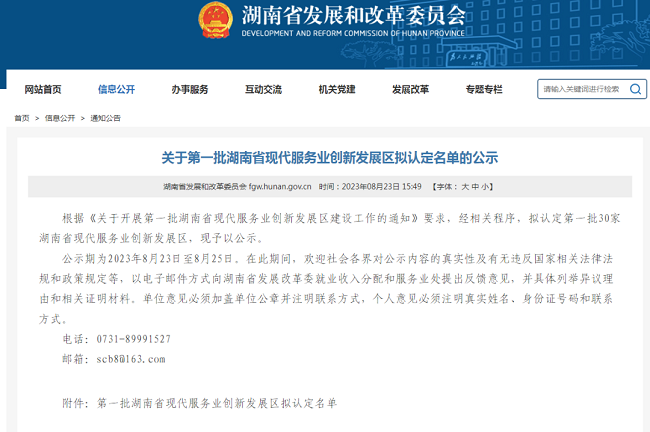 第一批湖南省现代服务业创新发展区拟认定名单
