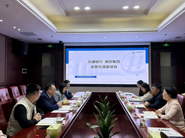12月18日,交通银行潇湘中心支行行长徐中红一行到访湘咨集团,双方围绕进一步深化合作展开座谈交流。集团党委书记、董事长曹雄鹰,党委委员、财务总监彭超参加座谈。曹······