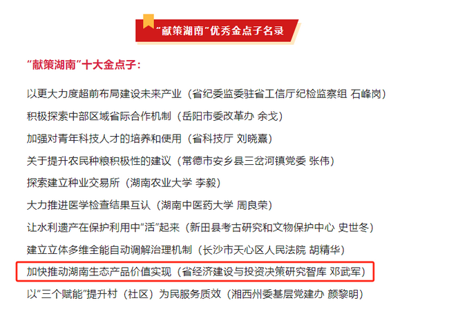 “献策湖南”金点子征集活动是省委安排部署、省委社会工作部牵头负责的一项人民建议征集工作。“湘咨集团”作为省级“智囊团”积极参与、踊跃献策,撰写的《加快推动湖南生······